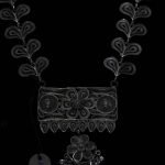 The two most common types of necklaces are madhumati and floral. The madhumati necklaces are in silver without any filigree work. The floral necklaces have a floral theme and are made of filigree work.