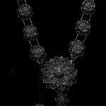 The two most common types of necklaces are madhumati and floral. The madhumati necklaces are in silver without any filigree work. The floral necklaces have a floral theme and are made of filigree work.