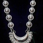 The two most common types of necklaces are madhumati and floral. The madhumati necklaces are in silver without any filigree work. The floral necklaces have a floral theme and are made of filigree work.