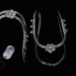 The third category of armlets have a central motif that matches the long necklace and is made in filigree. The length is adjustable, and the sides are held together with a silver chain and hook.